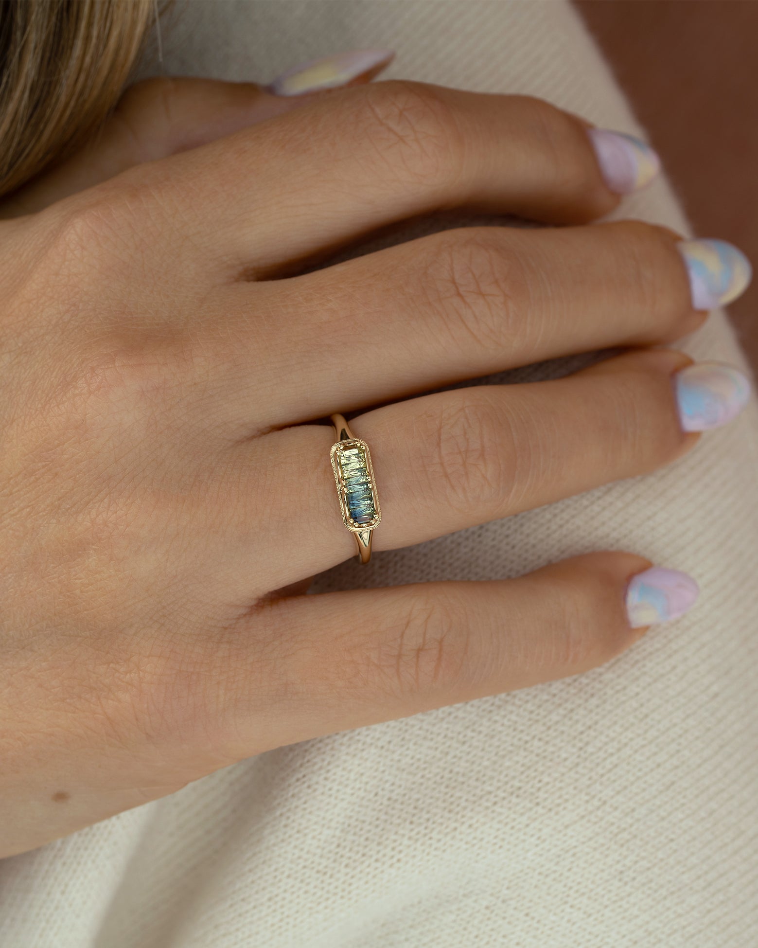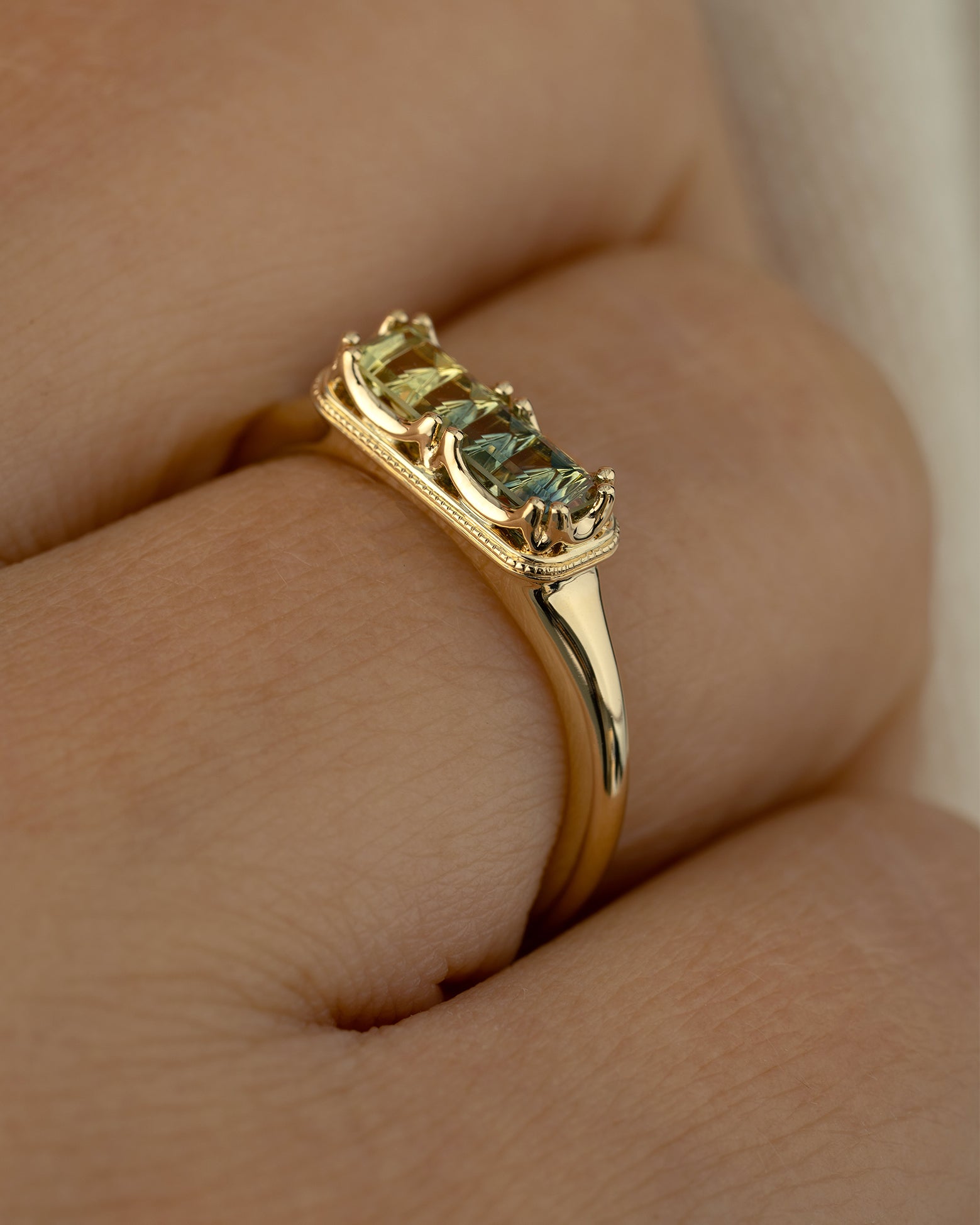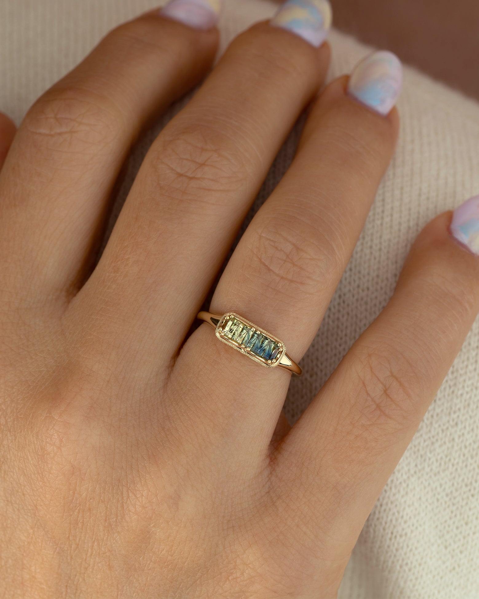 OOAK Novelty Cut Parti Sapphire Ring with Milgrain Detail