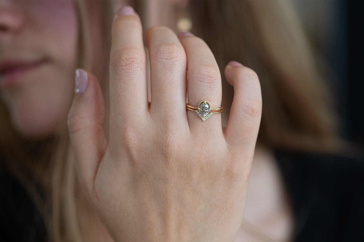 18k gold | oval salt and and pepper diamond