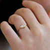 vintage diamond triangle ring in 18k solid gold set with two sparkly triangle diamonds.